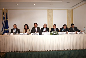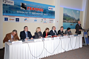 H.E. Mrs. Vivianne Reading, Member of the European Commission, H.E. Mr. Andreas Lukourentzos, Undersecretary of the Ministry of Education, H.E. Mrs. Sofia Kalantzakou, Under-secretary of the Ministry of Employment and Social Protection, H.E. Mrs. Anna Diamantopoulou, deputy of PA.SO.K., ex Member of the European Commission, H.E. Mr. Petros Doukas, Under-secretary of Treasury, H.E. Mr. Anastasios Nerantzis, Under-secretary of Ministry of Transport and Communication, H.E. Mr. Dimitris Kontos, Secretary-general of the Ministry of Employment, H.E. Mr. George Mergos, Secretary-general of the Ministry of Treasury, H.E. Mr. Kostas Mousouroulis, Secretary General of the Ministry of Development., H.E. Dimitris Kostopoulos, General Secretary of Labour, H.E. Mr. Miltiadis Papaioannou, former Minister, Kostas Katsigiannis, General Director of the National Organization of Tourism, Dimitris Katsikopoulos, Prefecture of Achaia, George Kassimatis, Director of the Bureau of the European Parliament in Greece, H.E. Dr. Giorgos Manouris, Environmental Director of the Ministry of Environment and Public Works, Spuros Papaspuros, President of A.D.E.D.Y., H.E. Mr. Kostas Tsoutsoplidis, Secretary-general of the Ministry of Employment and Social Protection,